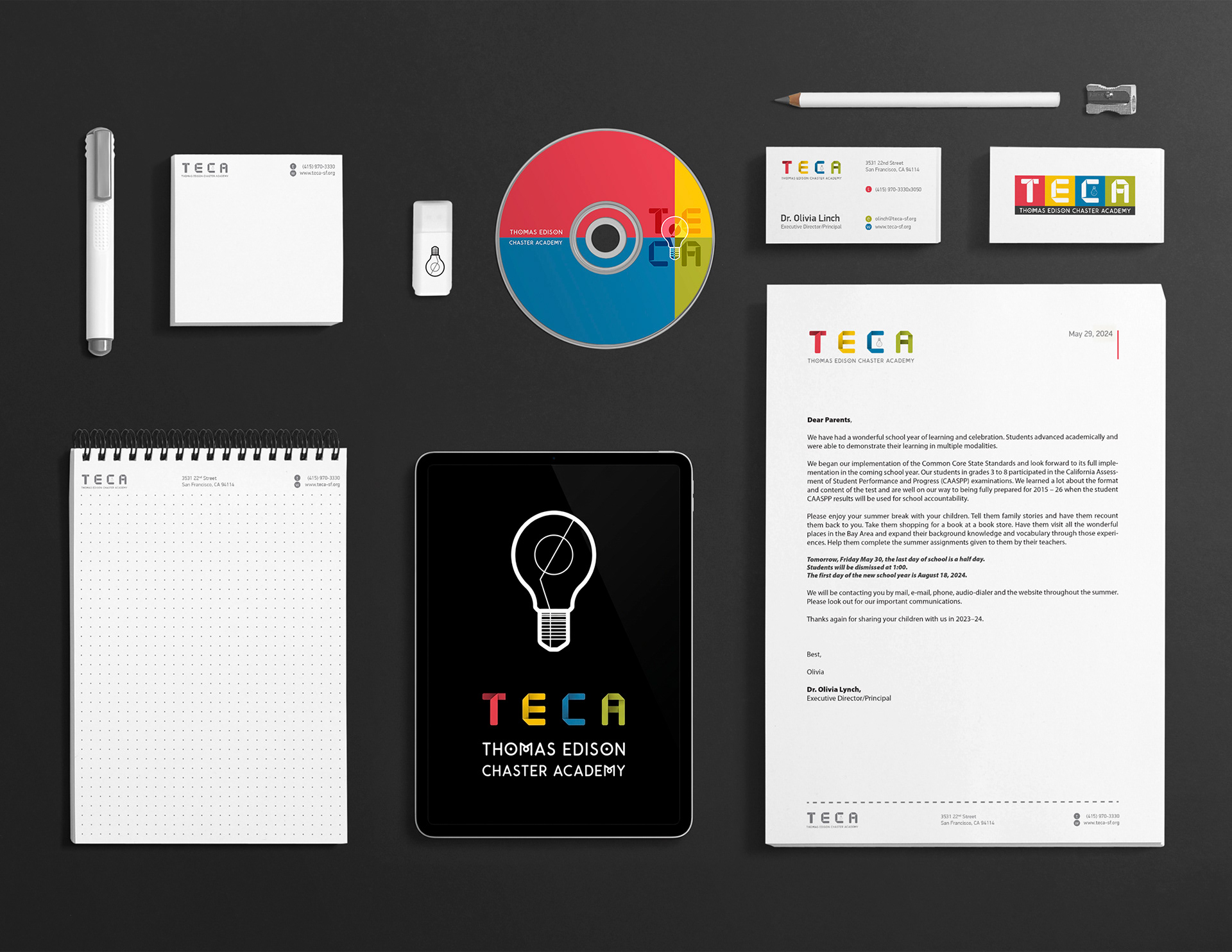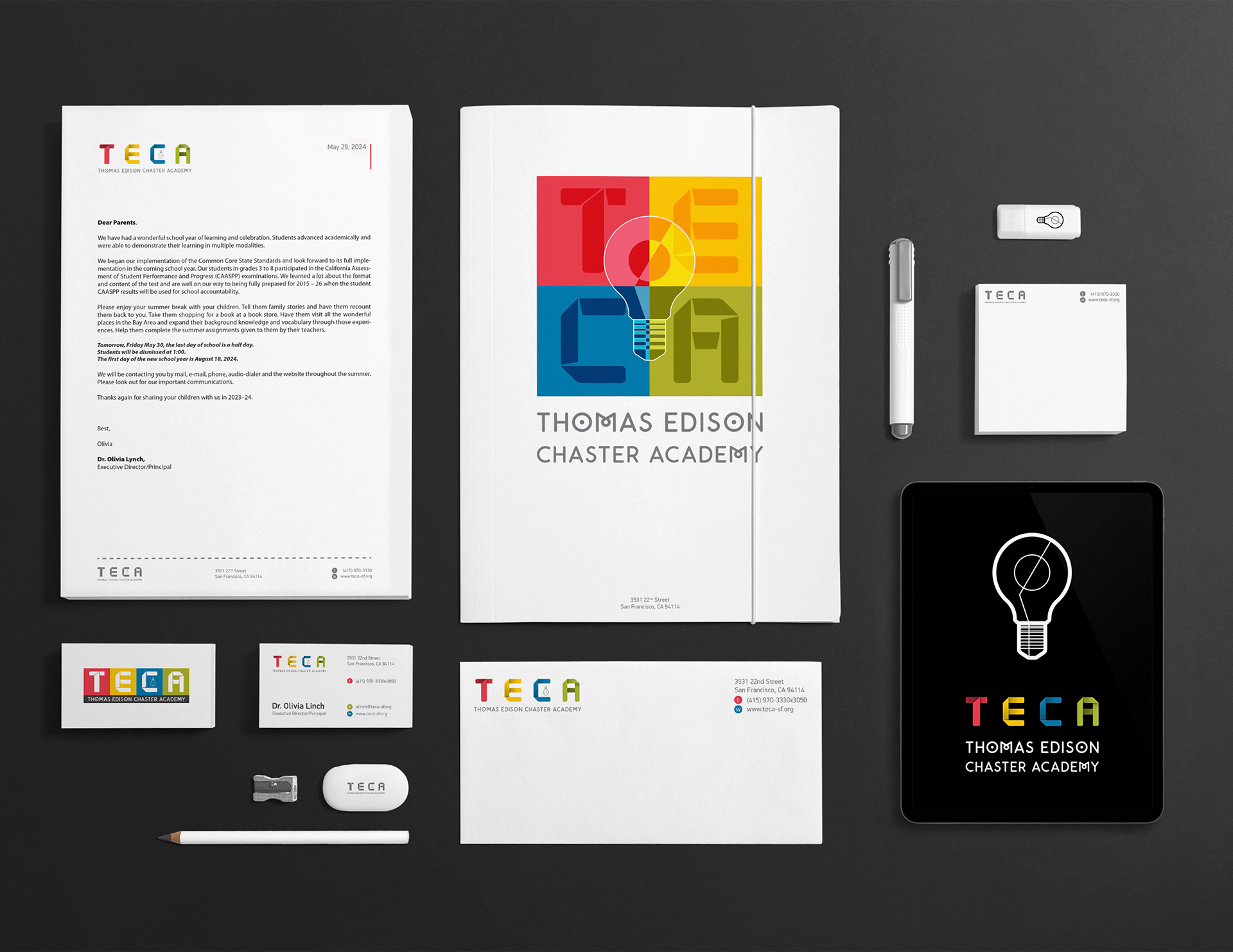 I changed the font, the color which I think is more suitable for the such Academy. I turned the lamp as I thought that the designation of sign of idea looks that way. Colors reflect the positive mood, childhood, success, all the most beautiful that is associated with children. RED/YELLOW/GREEN/BLUE is the base of all our nature. Identity consists of an adaptable logotype which abbreviates and shrinks depending on the device it is viewed on.